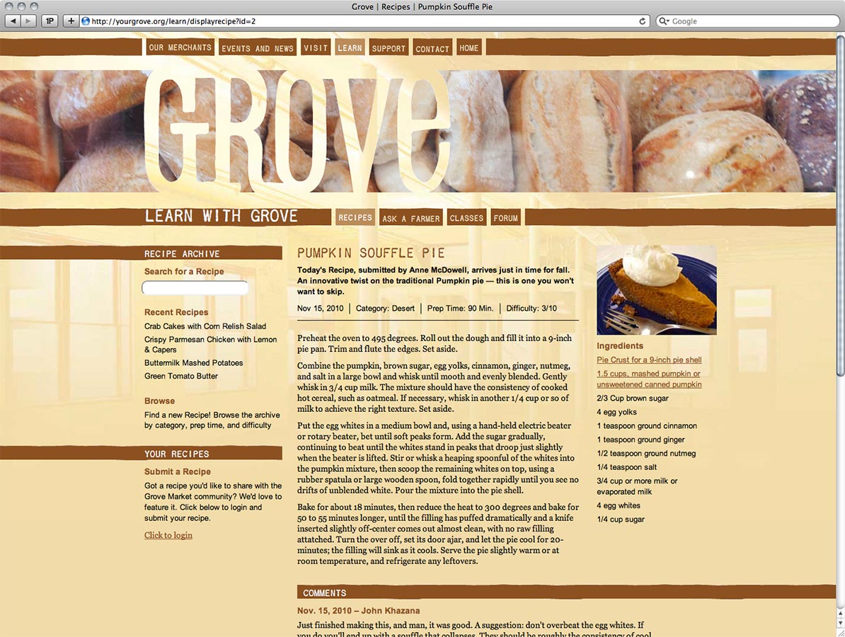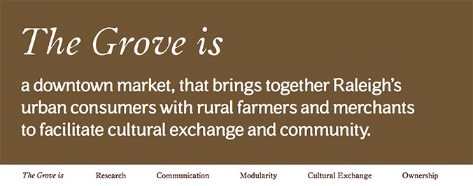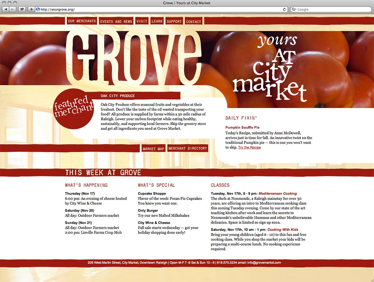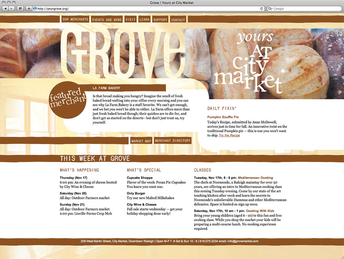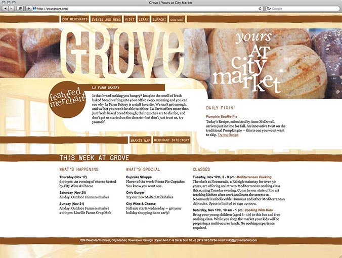 The Grove's website was designed to promote Grove merchants and events and to facilitate a cultural exchange between farmers, merchants, and customers.